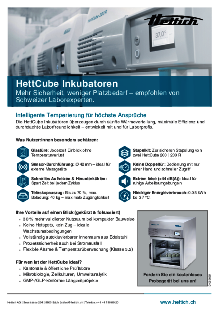 In unserem Flyer erhalten Sie einen umfassenden Überblick über die Funktionen und Leistungshighlights des HettCube 200 R. Hier herunterladen.