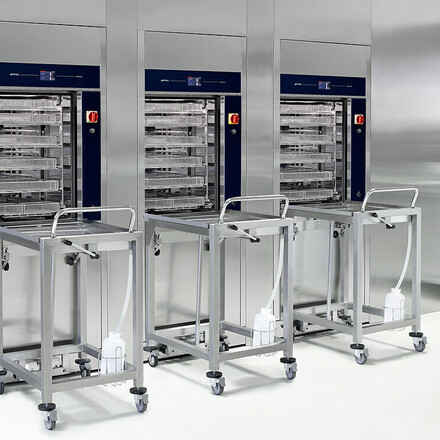 Trolleys are not included in the standard models. All chambers are AISI 316 and a steam condensor is optional. All devices have a declaration ‘Medical Device’ IIb.