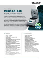 Con varias opciones de rotores para volúmenes de 0,2 a 5 ml, la MIKRO 2.0 se adapta fácilmente a diferentes formatos de muestras, ofreciendo precisión y versatilidad.