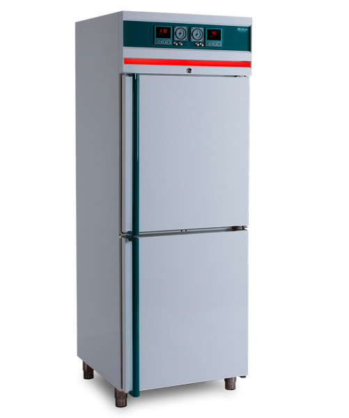 De kasten zijn voorzien van ons unieke 'Vertical Air System', dat minimale uitdroging van uw product garandeert. Met deze techniek combineren we de voordelen van natuurlijke convectie en geforceerde ventilatie. Ventilatoren worden buiten het werkgebied geplaatst, waardoor een zeer lage luchtstroom in de kast ontstaat. Dit zorgt voor een homogeen temperatuurprofiel in de hele kast. Dit wordt voornamelijk vastgehouden door warmtestraling, waardoor 'hot spots' worden voorkomen.