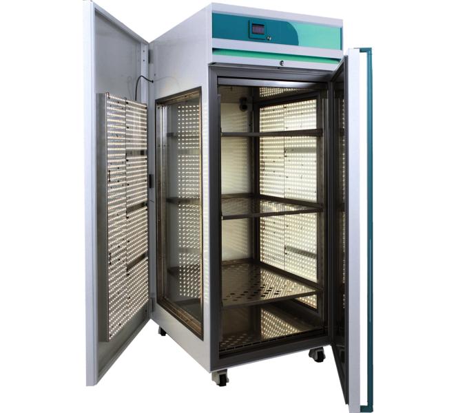 Een stabiele temperatuur homogeniteit bij een lage luchtsnelheid in de kasten geeft ideale condities om uw planten te kweken. De uniforme lichtverdeling van het led plateau aan de zijkant geeft een maximaal gebruikoppervlak. Een lage koelingscapaciteit en de wijze van bevochtigen resulteert daarbij in een laag energieverbruik.