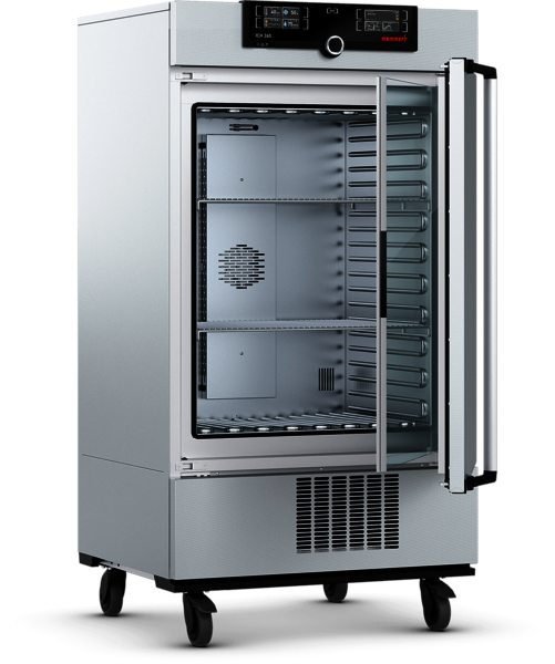 De stabiliteitstestkamers ICH(L) van Memmert leveren een uitstekende homogeniteit van temperatuur en vochtigheid. Het interieur is hermetisch gesloten waardoor de klimaatkamer ICH geen water meer gebruikt zodra de instelwaarden bereikt zijn. Twee hoogwaardige platina temperatuursensoren met onderlinge bewaking garanderen een onderbrekingsvrije werking op lange termijn, zelfs als één sensor uitvalt.
