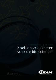 De farmaceutische lijnen zijn: BioMidi, BioCompact II en BioPlus. Verkrijgbaar met een intern volume van 425 - 1400 liter, afhankelijk van het model. Alle professionele Gram-producten worden door ons geleverd. Het volledige overzicht en de details zijn te vinden op de website van Gram.