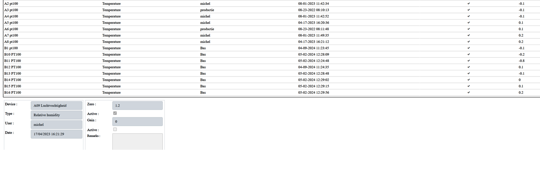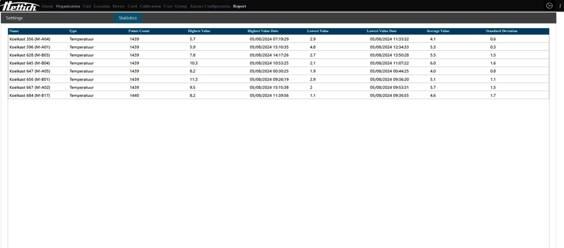 - Statistische waardes per meetpunt oproepbaar door gebruiker.