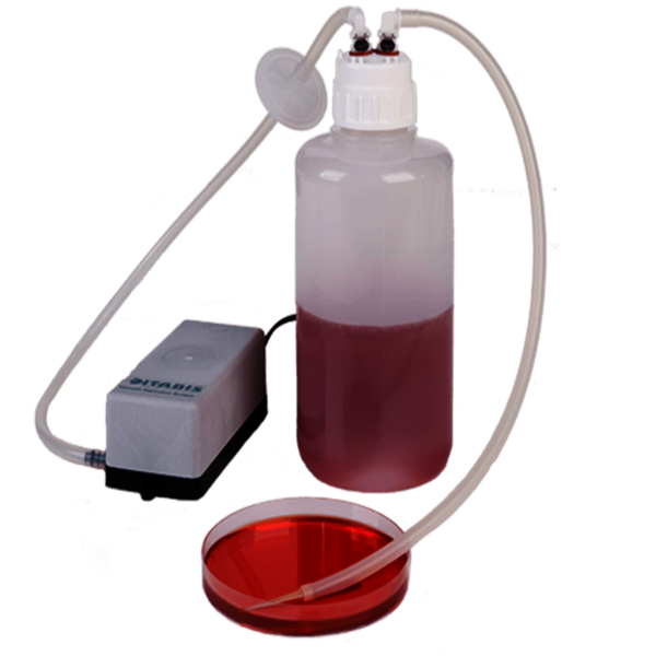 In laboratoria worden vacuumsystemen gebruikt voor het opzuigen, verzamelen en vervolgens verwijderen van vloeistoffen uit cuvettes, microtiterplaten, kweekflessen, buizen en petrischalen. Een routinetaak waar apparatuur voor nodig is die compact maar ook eenvoudig te bedienen en te installeren is.