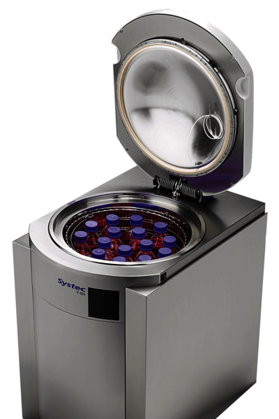 De Systec V-serie verticale autoclaven met bovenlader in 8 verschillende maten met een kamervolume van 40 tot 150 liter onderscheidt zich door zijn kleine voetafdruk en hoge kamercapaciteit.